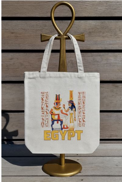 Ancient Egypt Tote Bag – Eco-Friendly Canvas Shopper with Eye of Horus & Ankh Symbol
